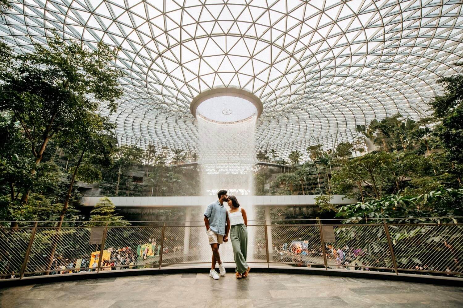 Thuiskomen met kiekjes van een klaterende waterval? In Singapore vind je een veertig meter hoog exemplaar ín de luchthaven. Changi Airport, steevast in de top drie van beste luchthavens ter wereld, kreeg er met het Jewel Changi complex vijf jaar geleden een parel bij. Kosten noch moeite werden gespaard om de natuur binnen te halen in deze indrukwekkende glazen koepel. De urban oase omvat een tropisch bos en botanische tuinen, wandelpaden, giga hangnetten en een vijftig meter lange loopbrug, een spiegelpaleis, doolhof, glijbanen en met mist gevulde speelplaatsen die de illusie wekken door wolken te rennen. ’s Avonds verandert de waterval in een licht- en geluidshow. Een knap staaltje architectuur en een lust voor je zinnen! Je zou bijna wensen dat je vlucht vertraging heeft… (Goed om weten: sommige attracties zijn betalend. Meer informatie op de website.)