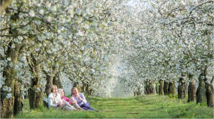 In en rond landcommanderij Alden Biesen in Bilzen kun je op heel wat manieren in de bloesemsfeer duiken: picknicken in de boomgaard of relaxen op een bloesemterras. Misschien wil je zelfs rondrijden in een elektrisch wagentje of de bloesemnacht op 27 april meemaken? Handig: door de boomgaard loopt een rolwagenvriendelijke vlonderpad.