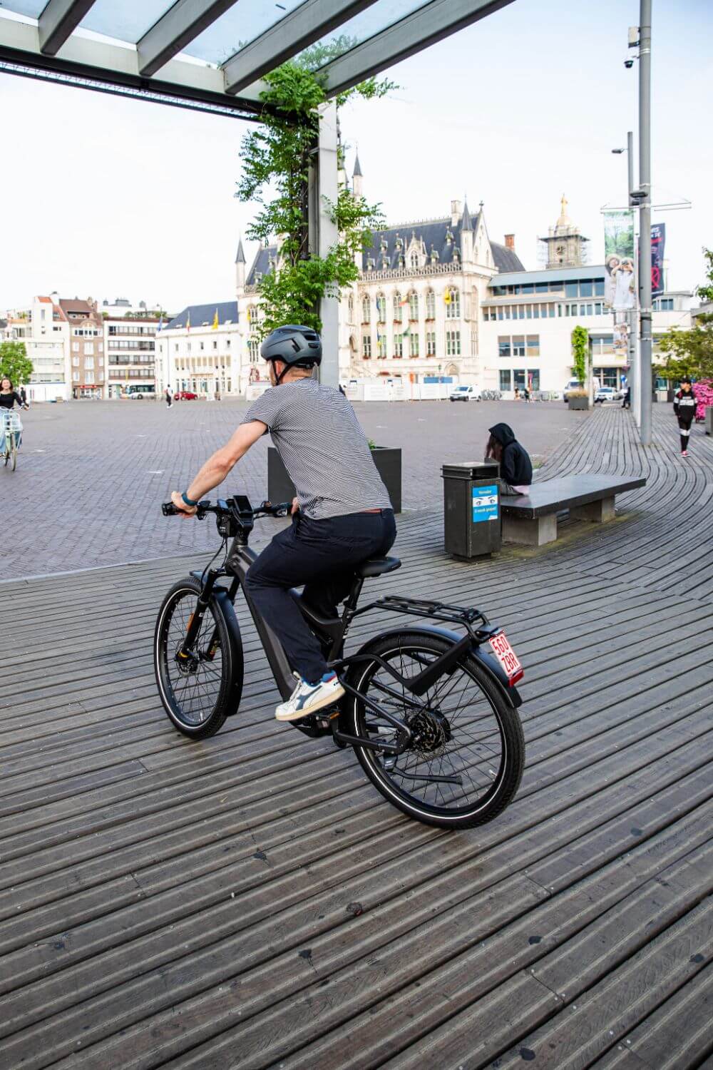 - Woordvoerder Mich houdt het sportief: hij sjeest met een Supercharger speedpedelec van Riese & Müller via de fietsostrade en voetgangerstunnel naar de Groenplaats.