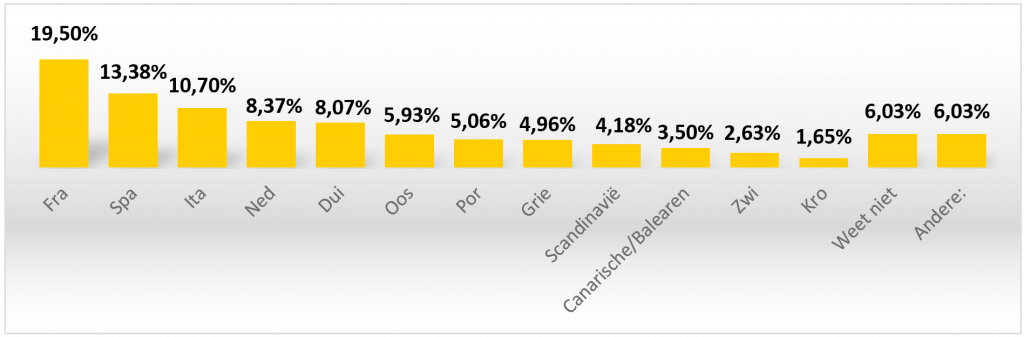 Verder in de top vijf van populairste bestemmingen: Spanje, Italië, Nederland en Duitsland. Opvallend: Oostenrijk wint – als alternatief voor Frankrijk? – aan populariteit.